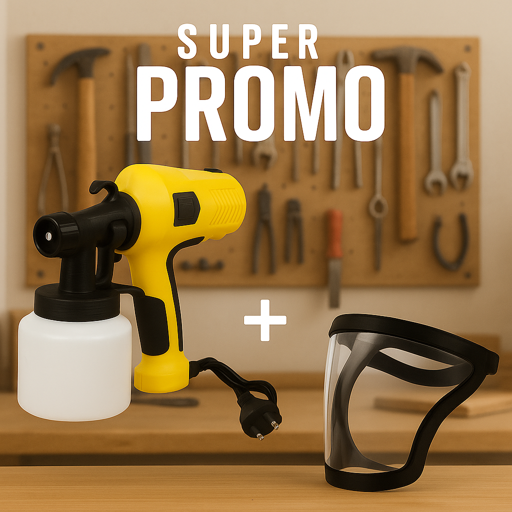 Kit de Pintura Eléctrica con Pistola Pulverizadora + Careta Protectora FacialEste práctico combo incluye una pistola pulverizadora eléctrica de pintura y una careta protectora facial, ideal para proyectos de bricolaje, carpintería, automotriz o mantenimiento general. Perfecto para quienes buscan acabados profesionales sin complicaciones.La pistola de pintura eléctrica cuenta con un diseño ergonómico, depósito de gran capacidad y boquilla ajustable, permitiéndote aplicar pintura de forma rápida, uniforme y con menos esfuerzo. Funciona con energía eléctrica y es compatible con pinturas a base de agua o aceite.La careta facial protectora ofrece cobertura total del rostro, protegiéndote contra salpicaduras, vapores o partículas en suspensión, ideal para mantener la seguridad mientras trabajas.Características del combo:Pistola de pintura eléctrica de alto rendimientoDepósito desmontable para fácil limpiezaBoquilla ajustable para distintos tipos de rociadoCareta protectora de rostro completo con visera transparenteIdeal para pintura en madera, metal, muros, muebles, etc.Fácil de usar, ligero y portátil¡Todo lo que necesitas para pintar con precisión y seguridad!PARA MAYOR INFORMACION COMUNICARSE AL +57 312 3074460